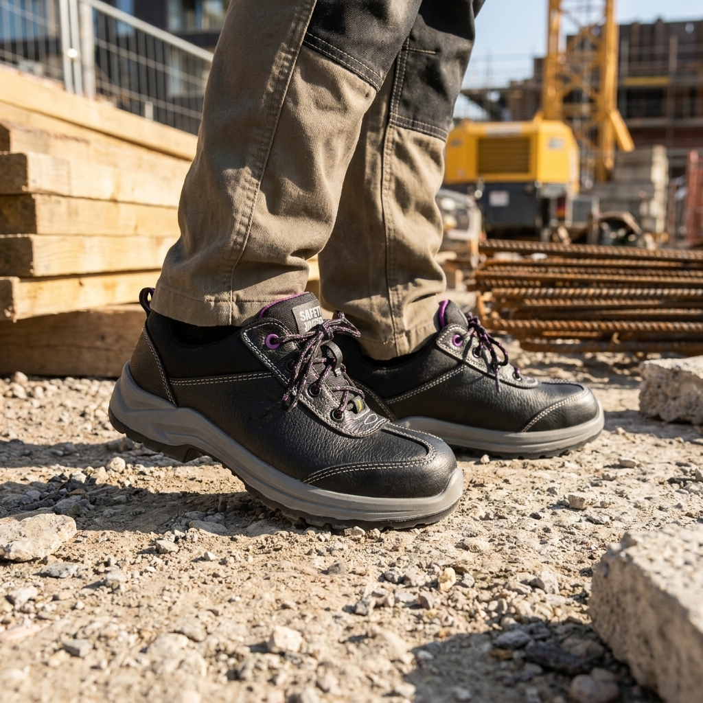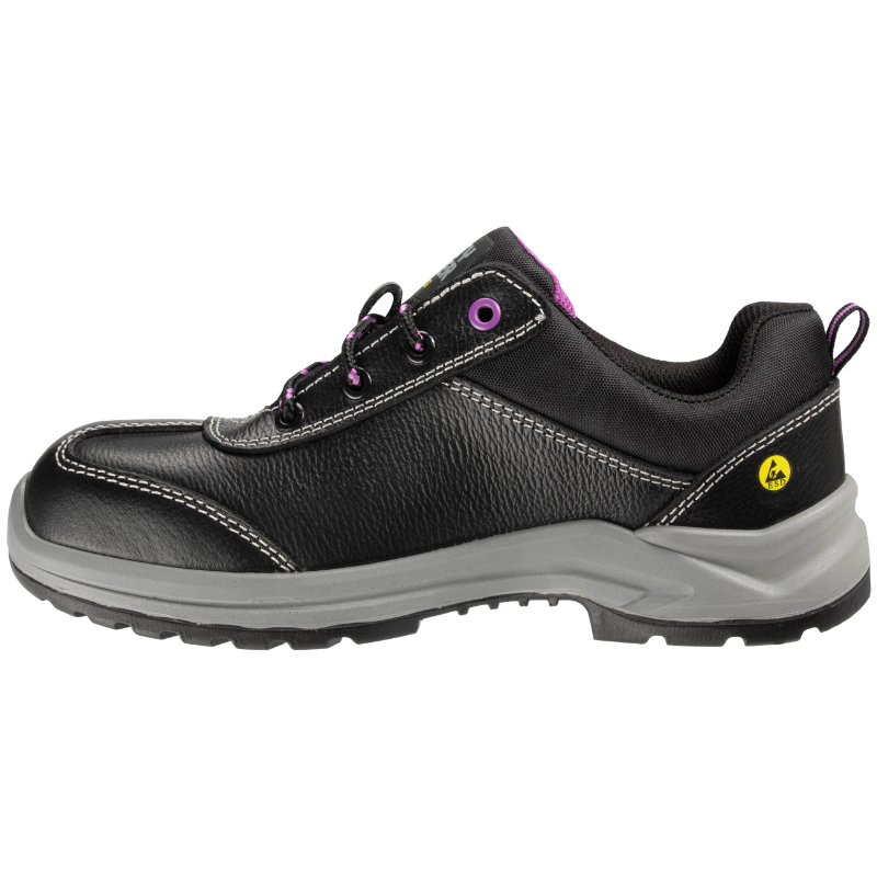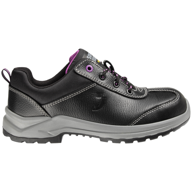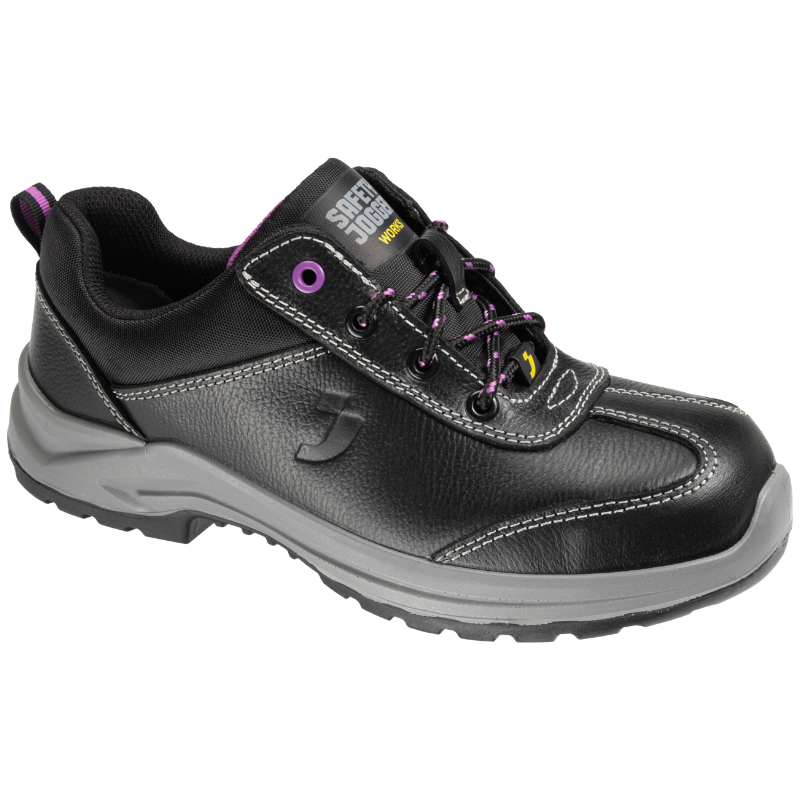 The SAFETY JOGGER BESTGIRL S3 LOW are tough safety shoes for women. It balances high safety with a low price. First, the leather upper keeps your feet dry and cool. This material blocks water but still lets air flow. Next, a strong steel toe stops heavy falling objects. A steel plate in the sole also prevents sharp nails from piercing your feet.